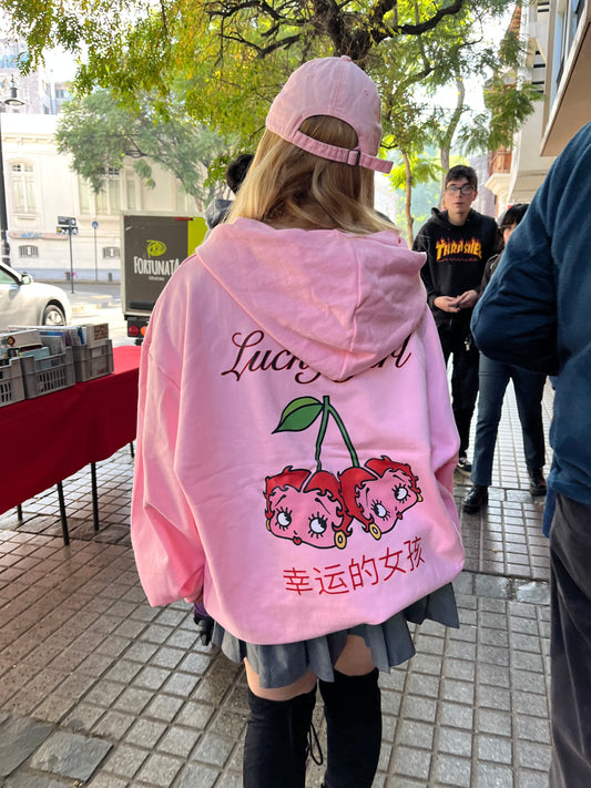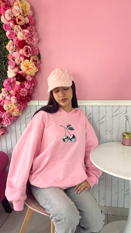 Hoodie cherry modelo clásico rosado pastel